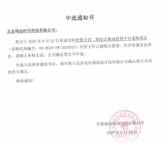 成功中标北京电信规划设计院有限公司智慧主语二期综合集成管理平台采购项目